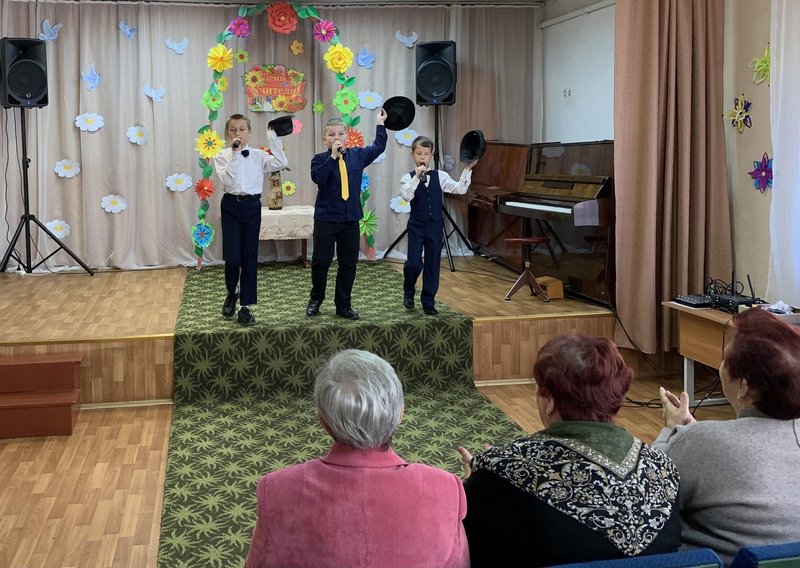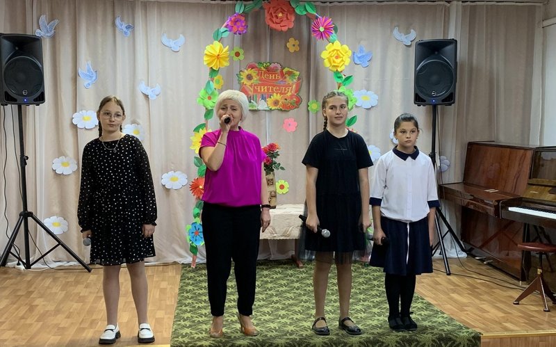 Вчера в Новодеревеньковской детской школе искусств и творчества прошло мероприятие, посвященное Дню учителя. В ярко освещенном зале звучала музыка. Юные художники подготовили выставку работ, посвящённую учителям. А юные музыканты и танцоры подготовили праздничный концерт. В гости к ребятам пришли ветераны педагогического труда - Петрищева Т.В., Жук Е.Г., Лазарева Н. М., Карабанов И.А.