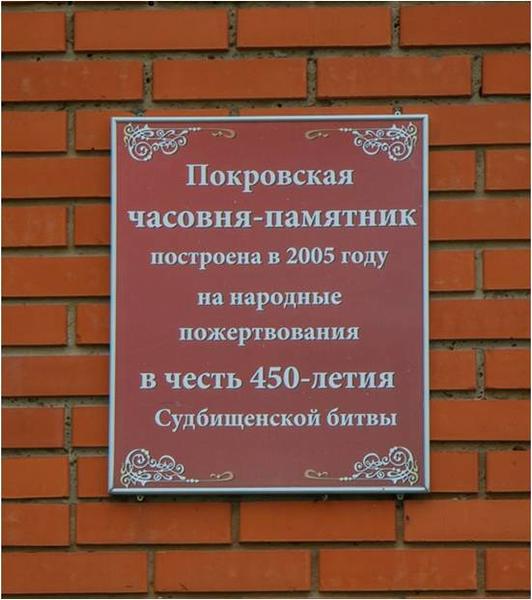 В 2005 в честь 450 - летия Судбищенской битвы на въезде в село на месте памятного сражения вблизи мемориального комплекса открыта часовня, построенная на благотворительные средства прихожан, как символ православной веры и увековечивания памяти о доблестном подвиге предков, павших во времена освобождения нашего края от различных захватчиков.
